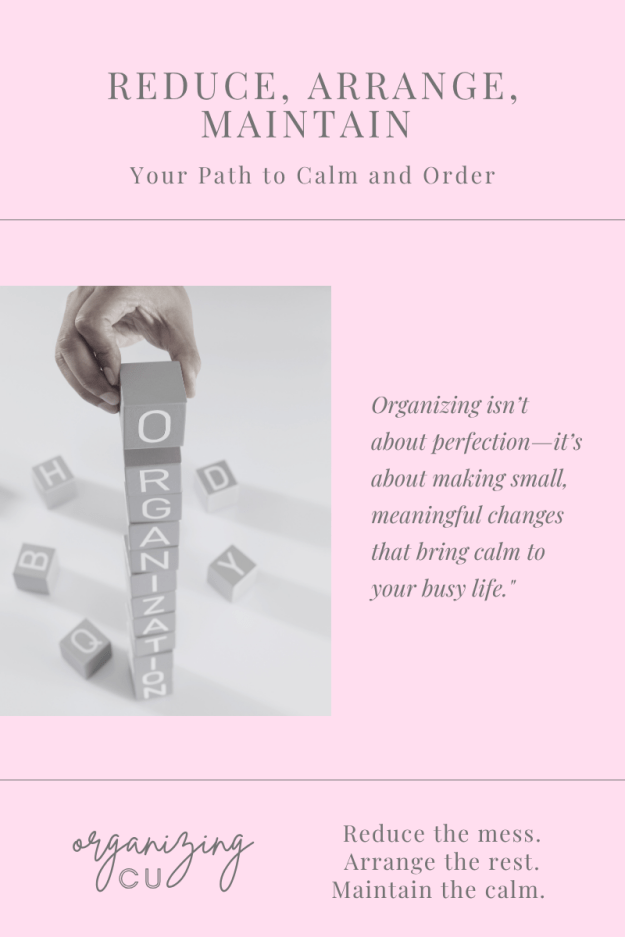 Organizing doesn’t have to be overwhelming or perfect—it’s about making small, meaningful changes that fit your busy life. When you focus on reducing the mess, arranging what matters, and maintaining the calm, you create a home that supports your family and gives you peace of mind.
